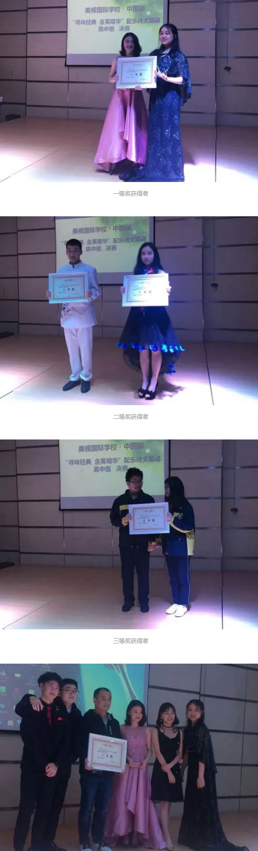 最后,經過評比,高二二班獲得一等獎,高一B班、高二一班、二班獲得二等獎,高二三班、高二中美班獲得三等獎。