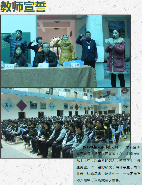 “亂云飛渡,戰士信念未移;馳騁疆場,方顯英雄本色。”三年的勤奮努力,只為這最后一搏,希望你們帶著老師的忠告,家人的厚望,同學的鼓勵,在這最后一戰爆發出前所未有的力量!