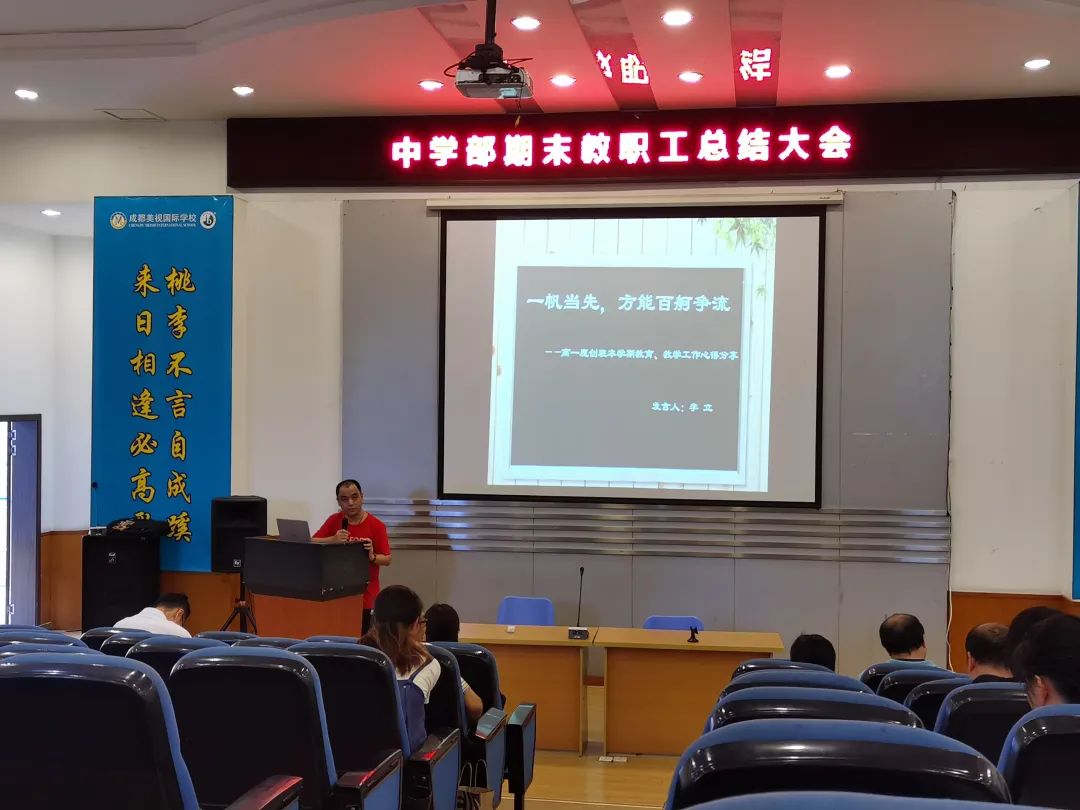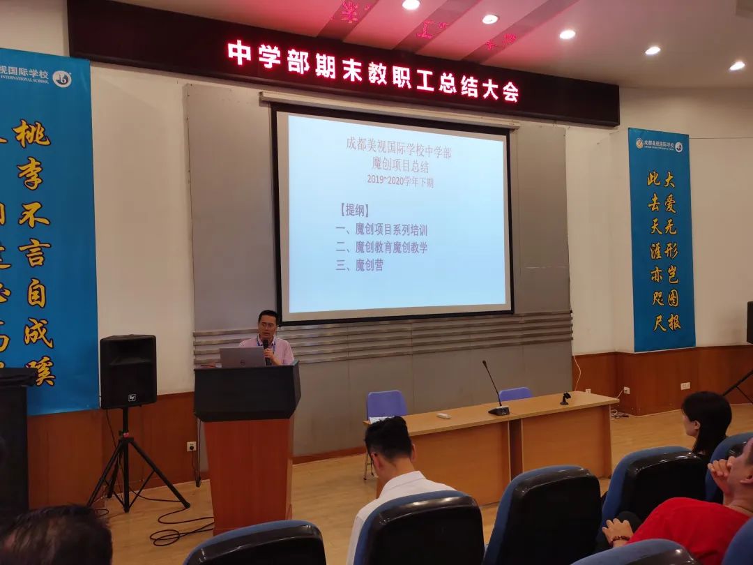 7月16日,中學部全體教職工在學術報告廳召開教職工大會,本次會議由中學部執行校長宋偉主持,會議有魔創項目總結、優秀教師分享等環節,大會以會代訓,讓全體教職工對學部本學期工作有了更加清楚的認識。