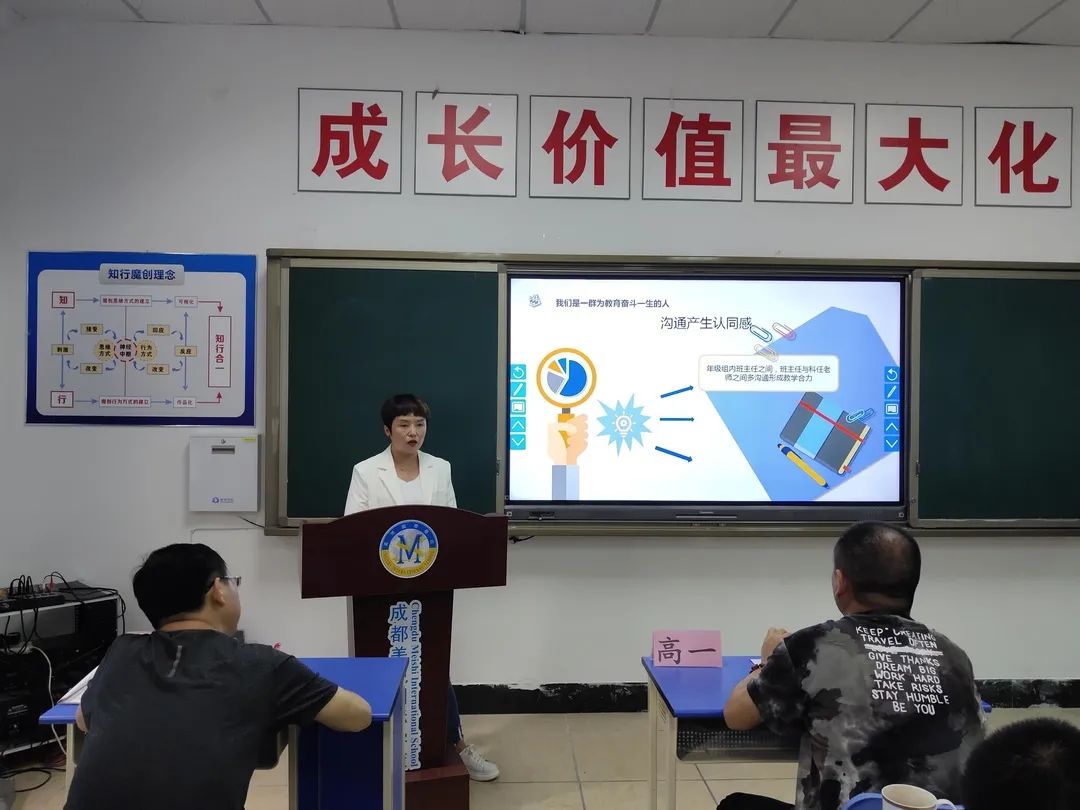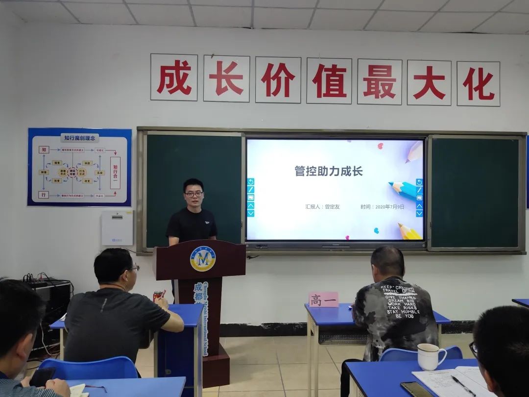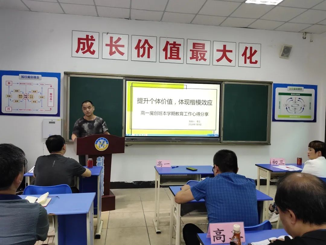 作為首屆魔創教育的班級,在“成長價值最大化”的核心理念指導下,兩位班主任根據班級特點進行了特色教育和管理,李立老師提出了在班級管理中要努力實現學生的個體價值最大化、體現學生在班級管理中的楷模效應最大化。曾定友老師則從管控助力學生成長方面進行了分享。