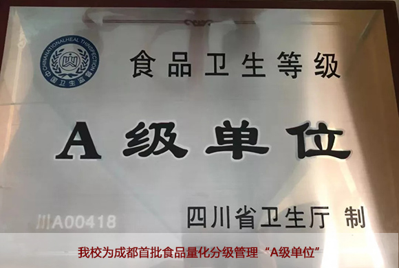 2005年,學校被四川省衛生廳在成都市食品量化分級管理認證中評為首批A級資質,一直以A級食堂、行業檢查標準進行日常管理。也曾獲四川省中初等學校“示范食堂”稱號。
