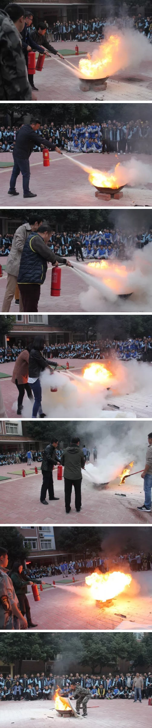 緊接著,生活老師代表和各年級教師代表也就滅火器的使用進行了現(xiàn)場體驗。