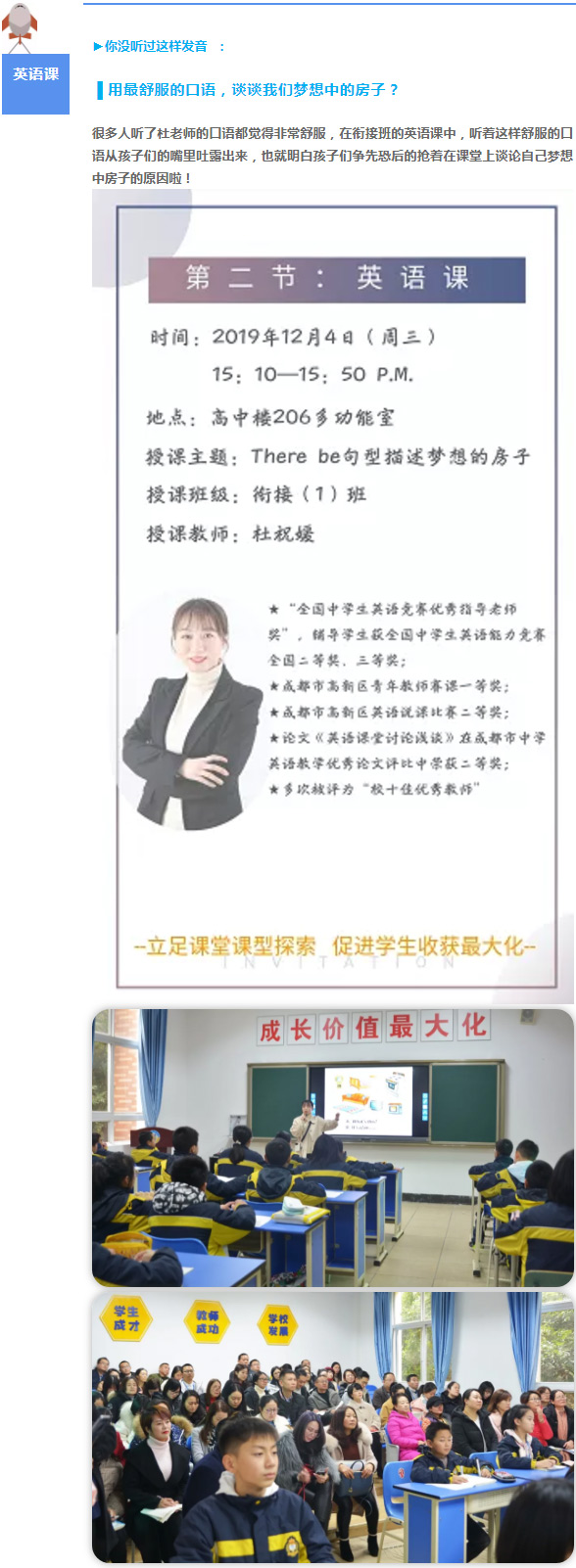 為進(jìn)一步推動(dòng)學(xué)改和教改,努力使課堂效率最大化、學(xué)生收獲最大化,努力形成廣大教師“鉆研教學(xué)”的濃厚氛圍,美視中國部·中學(xué)結(jié)合本學(xué)部教育教學(xué)實(shí)際,于本周三舉辦了第十八屆教育年會(huì)之街接班展示課活動(dòng),向到場的家長朋友們展示美視中國部全面去激發(fā)學(xué)生學(xué)習(xí)興趣,提高課堂教學(xué)效率的教學(xué)模式在此,小編也誠摯的邀請各位,與小編回顧展示課的風(fēng)采吧!
