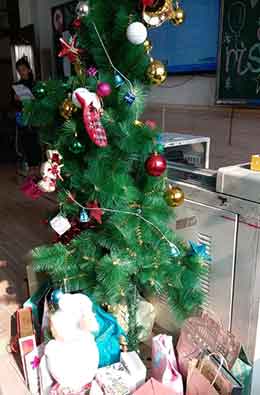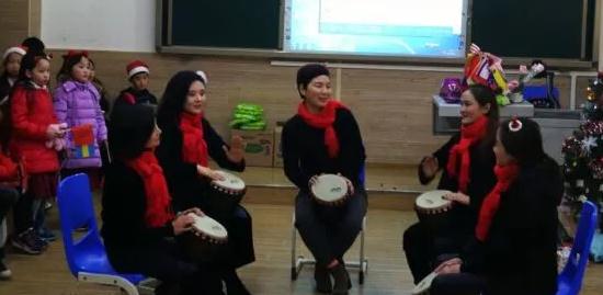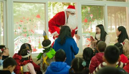 雪花隨風飄,花鹿在奔跑。圣誕老公公,背著美麗背包,經過了原野,渡過了小橋,跟著和平歡喜歌聲翩然地來到了美視中國部·小學的孩子們身邊,帶來了平安,帶來了歡樂,帶來了夢想……