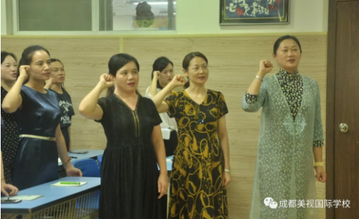 我們中國部小學(xué)全體教師在這神圣的時(shí)刻,莊嚴(yán)宣誓:師者,傳道授業(yè)解惑。在美視,我們將一如既往遵從:“既為人師,以仁愛人,以德修身,學(xué)為人師,行為示范”的準(zhǔn)則,以嚴(yán)謹(jǐn)、務(wù)實(shí)的態(tài)度與孩子們共度幸福完整的教育生活。