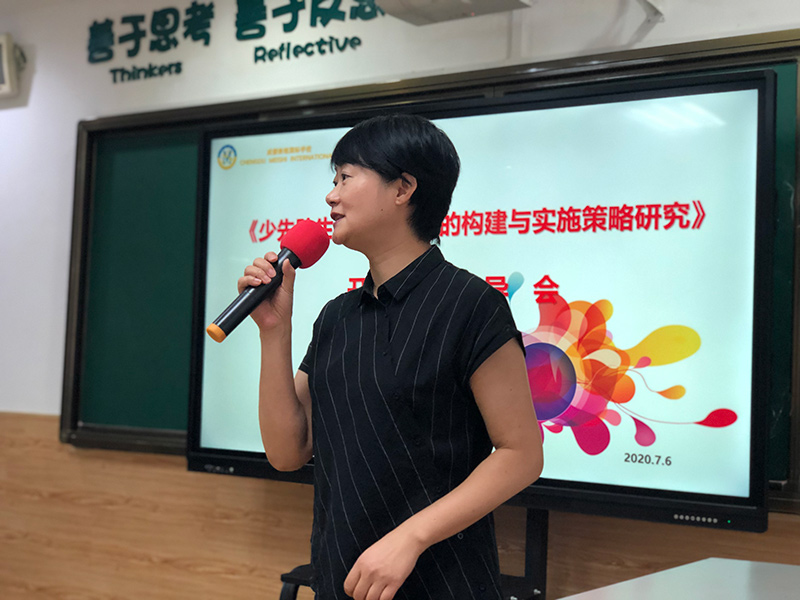 2020年7月6日,成都美視學校中國部·小學省級課題《少先隊生命自護課程的構建與實施策略研究》正式開題。我們邀請到六位課題專家:李戩(四川師范大學教授、博士)、晏祥輝(原四川團省委少年部副部長、博士、副教授 ),楊其勇(成都師范學院博士、研究員),易勇(四川省少先隊執行總輔導員),謝麗莎(成都師范學院副教授、國培專家),姚翠薇(成都師范學院副教授、國培專家)到校,做開題指導。