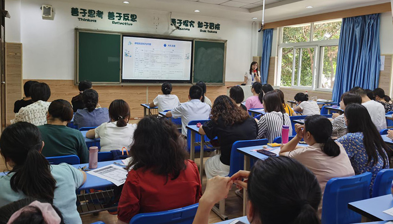 2020年8月25日,成都美視學校中國部·小學省級課題《少先隊生命自護課程的構建與實施策略研究》的主研人員在本校內對全體教師進行了再培訓。此次培訓分為兩個版塊進行:回顧與行動。