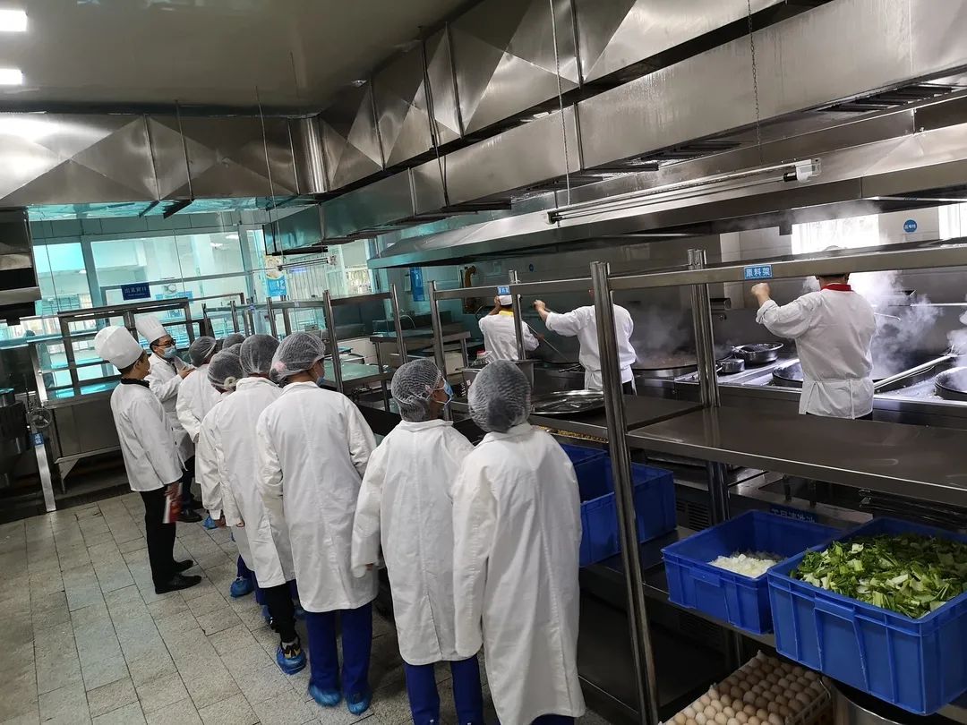 此次活動(dòng)得到了學(xué)校后勤陳校長(zhǎng)和學(xué)校餐廳負(fù)責(zé)人張貢平主任的大力支持。學(xué)生們分年級(jí)欣賞自己設(shè)計(jì)的食譜,餐廳張主任向孩子們介紹了餐廳食譜指定的原則及餐廳的運(yùn)作流程,并耐心講解了如何營(yíng)養(yǎng)地合理搭配飲食。隨后,孩子們?cè)诶蠋熀筒蛷d工作人員的帶領(lǐng)下參觀了學(xué)校餐廳后廚。