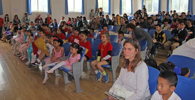 國際部禮堂中不時傳出陣陣掌聲及歡呼聲。出場順序是五年級、三四年級、二年級。孩子們從9月1日就開始刻苦地訓練今天要表演的節目。比賽結束后,優秀選手獲得了獎品及獎狀。團隊獎第三名由五年級獲得;二年級獲得了團隊第二名;冠軍由三四年級組獲得。冠軍獲得了又一次表演的機會。之后,劉校長做總結詞。最后,各表演團隊照了集體照,留下了一天中美好的記憶。