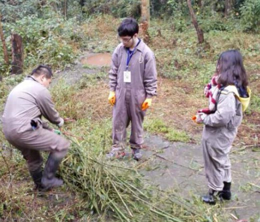 國際部的IB學子帶著對國寶大熊貓的熱切期盼于18日下午踏上了征程,一路上大家分享著碧峰峽基地的基本情況和大熊貓的萌照,歡聲笑語到達了基地。正式的服務從19日早上開始。一大清早大家就要起床,打掃熊貓的“公寓”,讓它們有一個清潔干凈的生活環境。緊接著就要去搬運熊貓們一天的“口糧”----竹子,將竹子劈成小塊以方便可愛的熊貓寶寶進食。中午的時候同學們分成不同的小組喂養自己小組的大熊貓,看著熊貓們在自己的照管下悠然地生活,同學們心里都有說不出的高興。