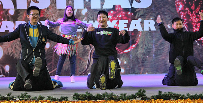 三到五年級的孩子們的集體舞蹈“Celebrating the Winter”又向大家展示了孩子們活力的一面,其中四年級同學的街舞solo贏得了大家的滿堂喝彩。