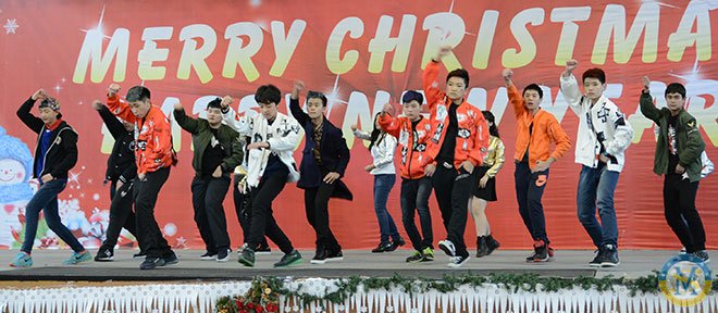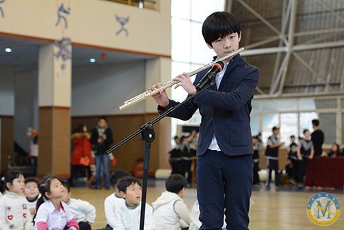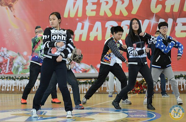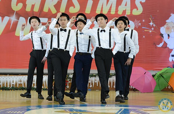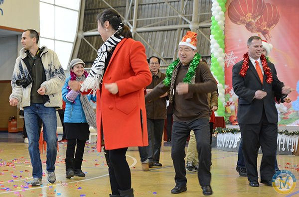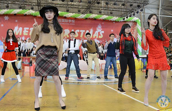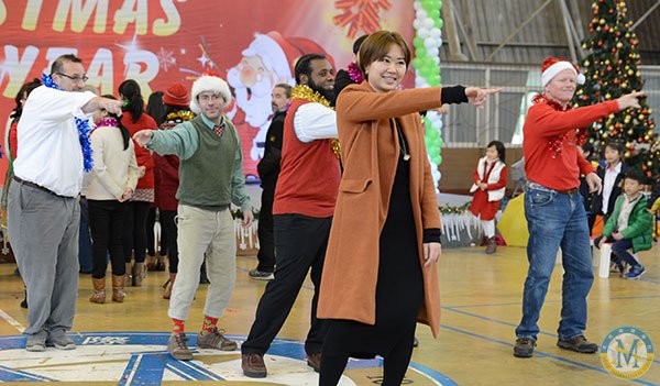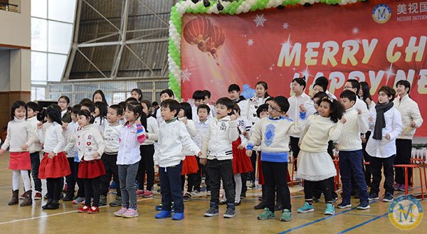 冬日難得一見的暖陽映照著充滿活力的校園,濃濃的圣誕新年氛圍悄悄地藏在校門口高大的圣誕樹上,藏在圣誕老公公和藹的笑容中,藏在國際部每位老師與孩子的心里。12月18日的學校體育館里歡聲笑語,紅色綠色的圣誕裝飾物隨處可見。孩子們同家長、老師一道歡聚一堂,慶祝這個歡樂的節日。