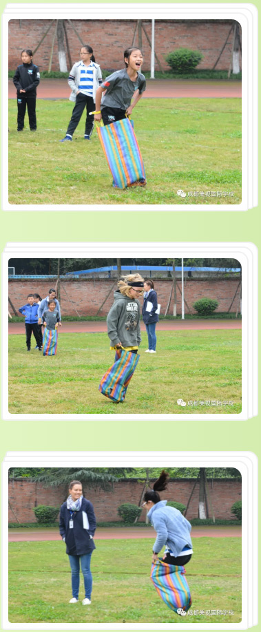 CISA Field Day開展的活動也是豐富多樣,包括轉呼啦圈、跳繩,拔河以及扔鞋子比賽等,每年的項目會有所不同。于是,在一個秋高氣爽、萬里晴空、陽光萬里、清風柔和...的日子,由成都國際學校聯盟(CIAS)組織的非競爭性戶外體育比賽在美視成功舉行!今年又是哪些項目呢?賽況如何?且聽小編給大家匯報吧!