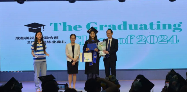 儀式的高潮是學位授予環節。當校長和DP協調員羅老師一一為畢業生們頒發畢業證書,并與每位學生合影留念時,歡呼聲和掌聲此起彼伏。每位畢業生的臉上都洋溢著燦爛的笑容,他們手中的證書象征著努力的成果和未來的希望。