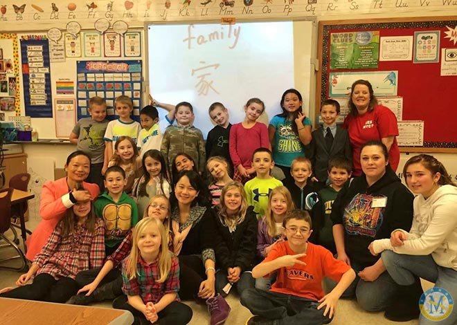 帶隊老師的中國傳統文化課一如既往的受到學校師生的歡迎。今天楊老師和李老師給學前班,一年級,二年級共七個班級的孩子上了課。這幾天的課程為美國小朋友認識中國打開了一扇窗:了解漢字的由來,演變,書法的藝術美;中國的握手禮儀;認識了一些簡單的漢字,并自己動手寫漢字等。