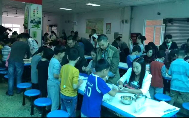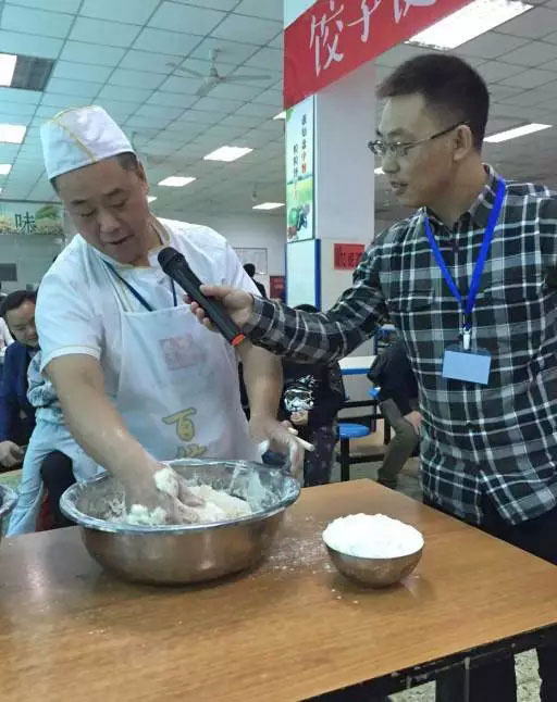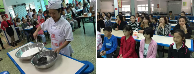 就拿10月23日的“家長(zhǎng)沙龍”來(lái)講吧!食堂的師傅一邊和面,一邊講解和面的秘訣,即水和面粉的最佳比例。讓孩子們知道要一邊和面一邊加水,一斤面粉加0.45升水。