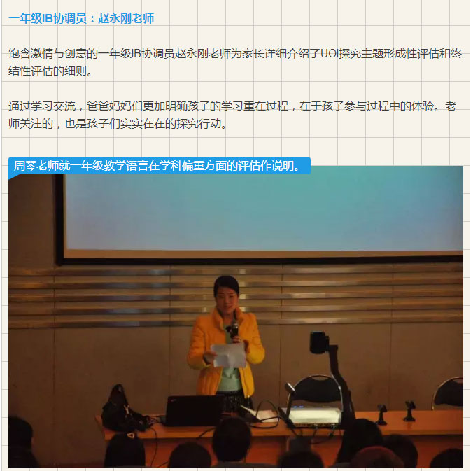 紀校長在簡單介紹完此次沙龍的主題后,也肯定了一年級已經開展的《我們是誰》《我們如何組織自己》兩個超學科主題所取得的成果。