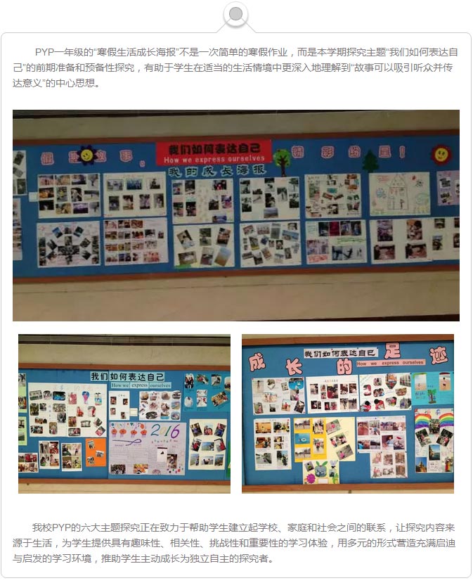 IB-PYP一年級將結合孩子們的探究能力和學習特點,把補充的教學資源大膽融合到超學科探究中,超越傳統科目,努力滿足學生在身體、社會、智力、美學、文化等方面多元化的需要,創建具有我校特色的超學科教學模式。