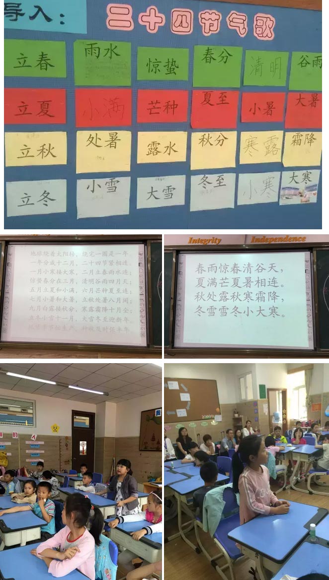我們用歌聲和動作演繹《二十四節氣歌》,我們陶醉在《春曉》、《夏天到》《秋天到》等音樂中,感受著四季的迷人。