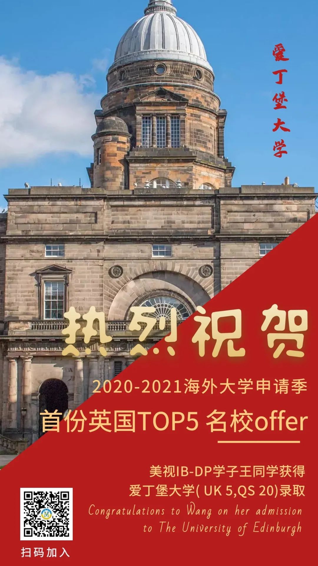 熱烈祝賀IB-DP學子王同學獲得愛丁堡大學(UK 5,QS 20)錄取!