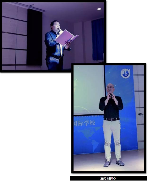 劉暉校長和潘波老師也站上舞臺,分別給大家?guī)砹俗约旱墓?jié)目。