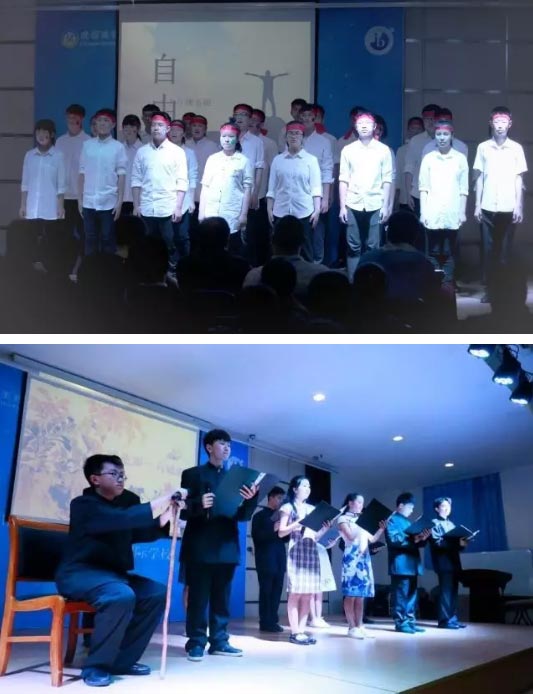 從選稿、配樂、訓練、服裝、隊員磨合,再經過層層的嚴格選拔和精心修改,初高中一共17支隊伍,分別代表了自己的班級,懷揣著對朗誦這一語言藝術的熱愛、對美好生活的謳歌,站上舞臺,為老師、同學還有家長們,獻上了一臺高水準的精彩朗誦。