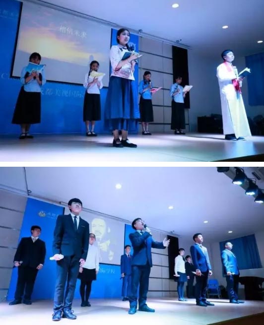 還有同樣以慷慨激昂風格在場上角逐的初一一班的《相信未來》和初二一班的《我有一個夢想》。