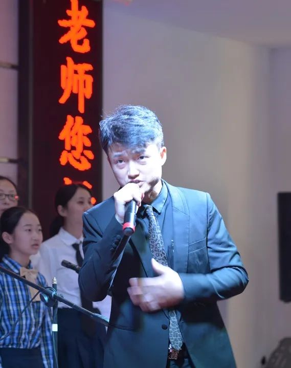 初一年級帶來的一首耳熟能詳的歌曲《夜空中最亮的星》:親愛的老師,您就像夜空中最亮的星,為我們指明前行的道路,有您的每一步,我們從未迷失方向!