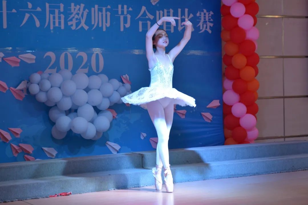 在比賽正式開始前,曾為朗朗伴舞的刁熙桐同學帶來助興表演芭蕾舞《天鵝湖》,那翩翩的舞姿中傳遞著對教師最美的禮贊。