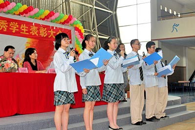 6月1日下午,中學部舉辦一年一度優秀學生表彰大會。在六一兒童節這個特殊的日子,80余名中學生光榮地加入了中國共產主義青年團,肩負起建設祖國的重任。“我感恩,我成長”,6名學生代表詩歌朗誦感謝父母老師的養育教導。