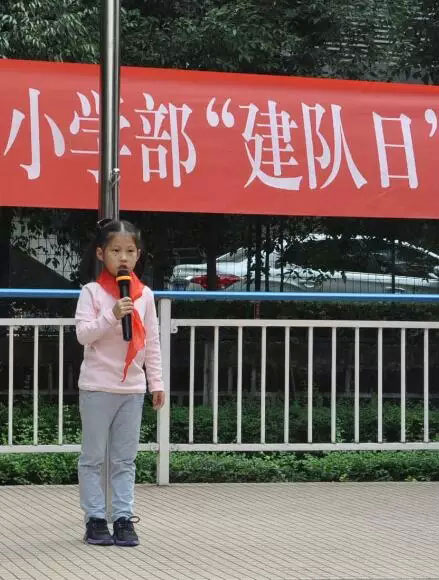 新隊員代表鄧璐函小朋友,更是發出了代表所有新隊員的心聲。“感謝每一個關愛我們的老師、同學和爸爸媽媽,我們在建隊日這天戴上紅領巾,是我們最大的榮耀,我們一定會好好學習,努力向上,不辜負所有人對我們的期望。”聽聽那稚氣的語言,看看那天真的笑容,一聲聲雷鳴的掌聲,讓我們對她豎起了大拇指。