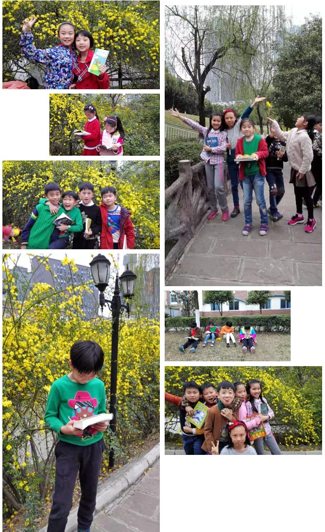 還有的孩子在老師的帶領(lǐng)下感受著美麗的校園,他們以花為伴欣賞迎春花的美,他們草坪為墊,開展陽(yáng)光下的閱讀活動(dòng),更有的孩子流連于小橋流水間,觀賞著校園池塘里那活蹦亂笑的鯉魚……