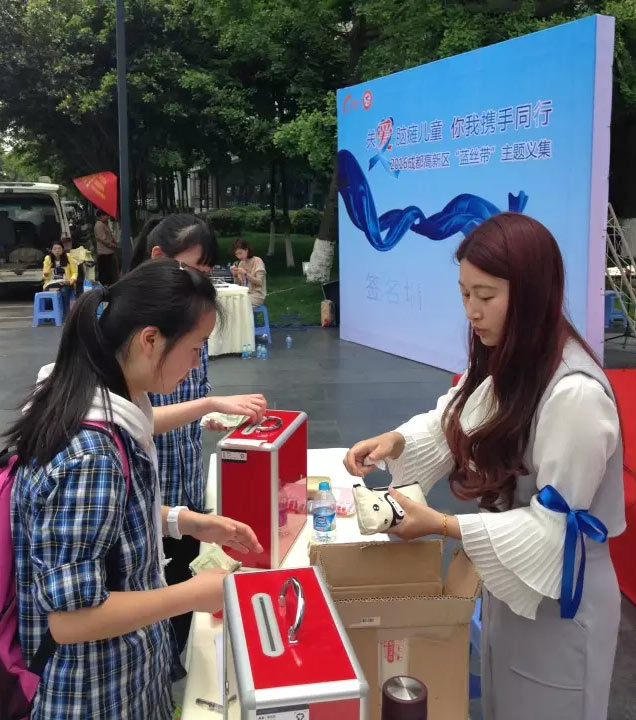 4月27日,高新區志愿者協會在天府軟件園C區中庭開展了“藍絲帶”活動。此次活動旨在募集善款,幫扶轄區內腦癱兒童經濟困難家庭,同時幫助腦癱兒童及家庭獲得更多機會利用專業平臺治愈疾病,重燃生活的希望。