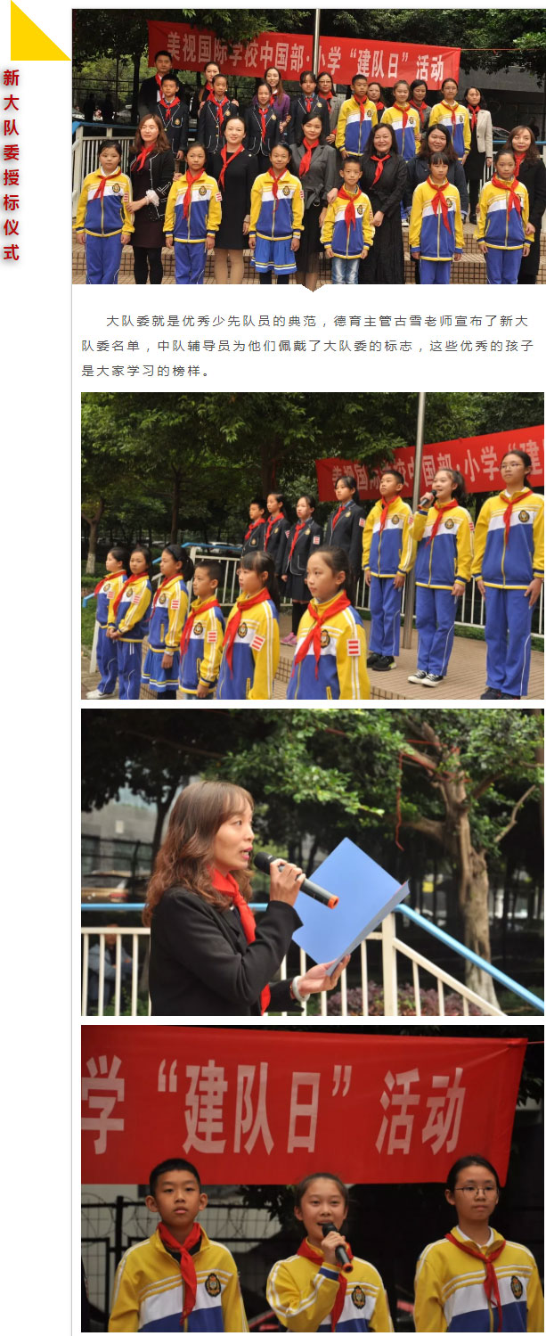 在莊重優(yōu)美的歌聲中,入隊儀式拉開了序幕。經(jīng)歷一個月的“試用期”之后,新一屆大隊委正式誕生,他們還將自己的入職宣言張貼在宣傳欄,隨時接受少先隊員們的檢閱。