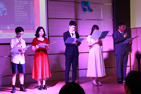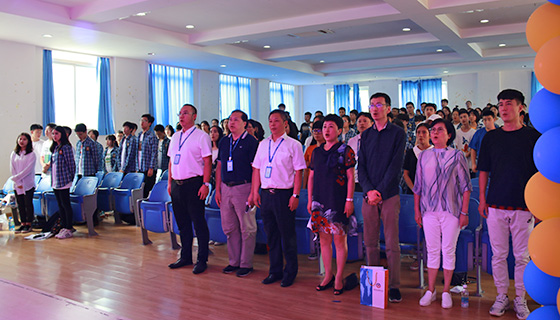 緊接著,來自初三3個班的五名主持人登臺,介紹參會的學校領導。
