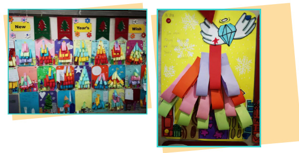 再來(lái)看看二年級(jí)的乖娃娃們做的漂亮的英文賀卡。有的說:“希望我明年成績(jī)更優(yōu)秀”;也有的說:“祝愿大家新的一年里身體更健康”;還有的說:“希望圣誕老人能送我一只可愛的寵物狗狗”……字里行間寄托的是對(duì)新年的美好祝愿。