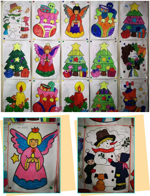 走進(jìn)二樓過道,這里有一年級(jí)寶貝們的圣誕元素英文寫繪展示。作為學(xué)校里最小的乖乖們也能用英文寫出好多單詞,是不是很棒啊?從小在國(guó)際文化的熏陶下成長(zhǎng),孩子們都是具有國(guó)際視野的小小中國(guó)人。