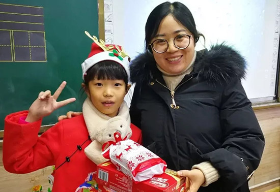 在全校合唱“Santa Claus is coming to town”的時(shí)候,“圣誕老人”帶著禮物出場(chǎng)了,全場(chǎng)沸騰了!他告訴孩子們,他帶著禮物從遙遠(yuǎn)的北極趕來(lái),給今年最努力的孩子分發(fā)禮物。隨后他從“抽獎(jiǎng)箱”里抽取了2個(gè)幸運(yùn)班級(jí),把禮物送給了他們。獲得禮物的孩子們太開心了!