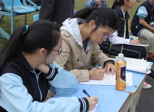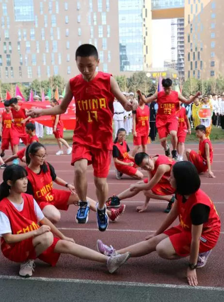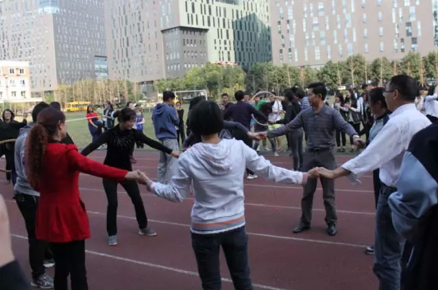 首先進(jìn)行的人體呼啦圈由八位老師參賽,參賽老師手拉手圍成一圈,不通過手將呼啦圈傳遞兩圈,計(jì)時(shí)最短的隊(duì)伍獲勝。比賽開始后,八個(gè)參賽小組爭分奪秒,靈活的身體穿梭于呼啦圈中。最終,高二年級(jí)組獲得冠軍,生活老師組和MYP項(xiàng)目組分獲二三名。