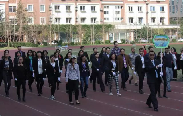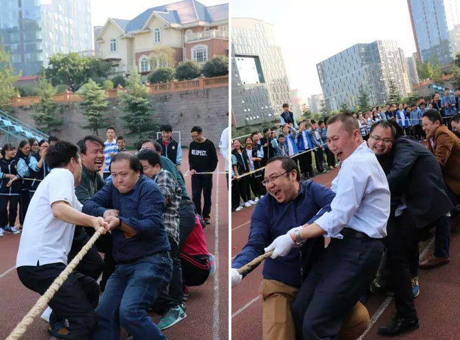 壓軸出場的教師方隊(duì),邁著整齊、干練的步伐閃亮登場,博得了最熱烈的掌聲。今年的趣味賽由“人體呼啦圈”和“拔河”兩個(gè)比賽組成。