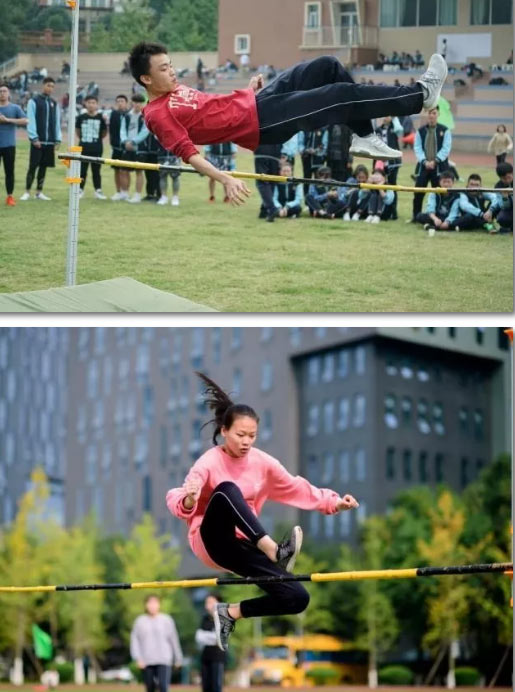 跳高墊旁,似一匹匹黑馬,后來居上;似一只只雄鷹,盤旋而上;似一條條鯉魚,勇躍龍門。