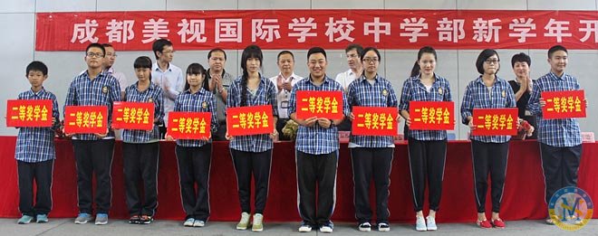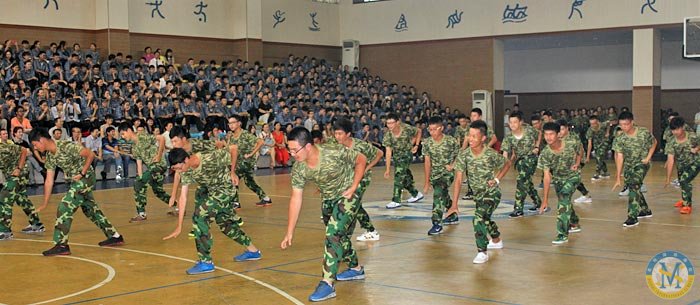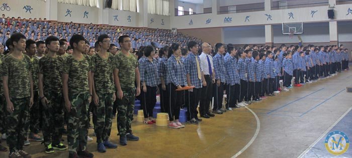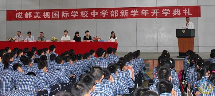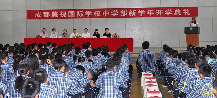 9月2日下午4點,成都美視學校中學部新學年開學典禮在學校體育館內隆重舉行。中學部校長發表致辭,教師代表、學生代表也紛紛上臺演講,最后新生代表向大家展示軍訓成果。