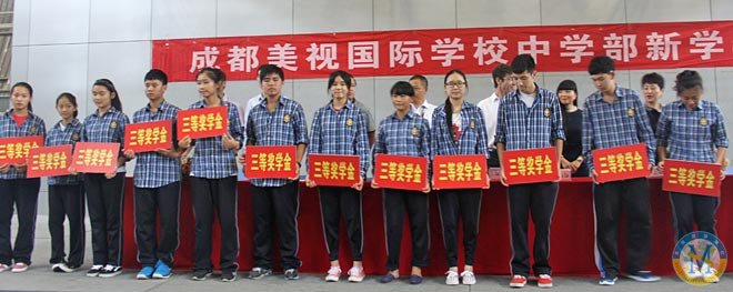 榮獲中學部2013——2014學年一等獎、二等獎、三等獎獎學金的同學上臺領獎