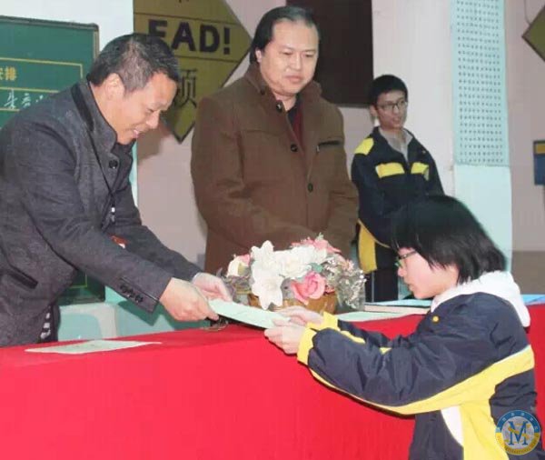 中學部校長徐德雄和副校長劉暉為優異學子頒獎,更激發著這些初戰告捷的“戰士們”的勤學后勁!