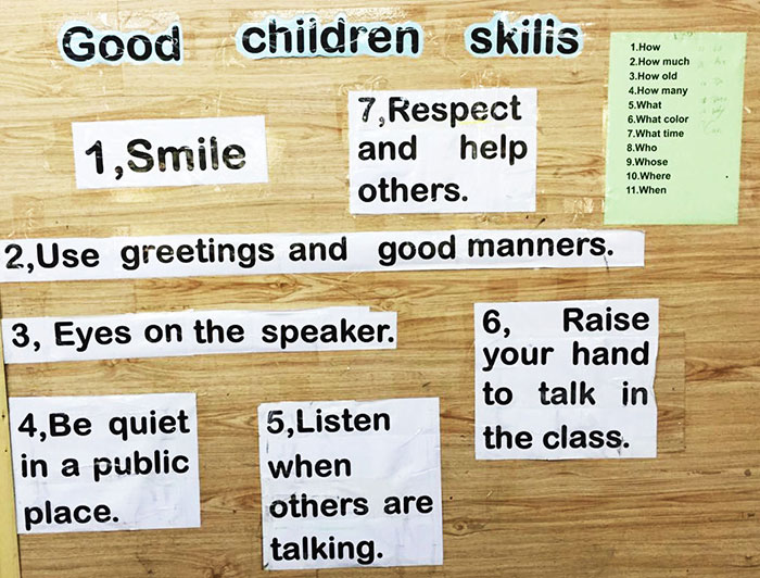 “安全第一,勤學好問,尊重理解,愛惜所有。在合適的時間,適合的位置做合適的事。”