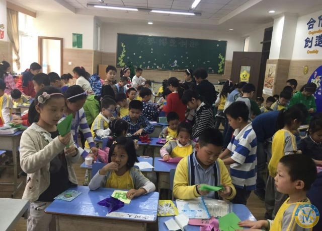 熟絡熟絡,大家便打成一片。哥哥姐姐們開始教弟弟妹妹們折紙花、做賀卡。哥哥姐姐們教得耐心、細致,小客人們也學得有模有樣。不一會兒,大家手上都多了一件手工作品。