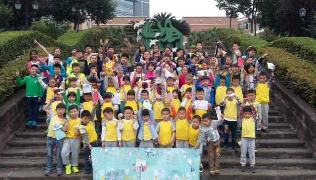 當幼兒園的小朋友們走下大巴車時,等候多時的小學部三、四年級的哥哥姐姐們不禁雀躍。可愛的小客人,歡迎光臨!