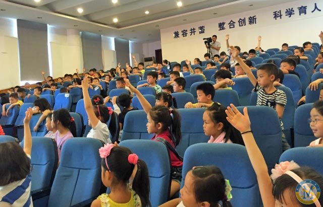 小朋友們興趣盎然,時而凝神靜聽,時而認真模仿一招一式,時而高舉小手爭相發言……課堂傳來笑聲一片。