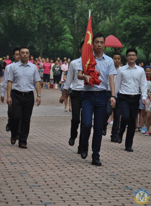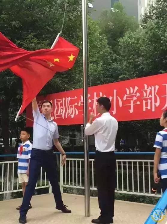 迎面走來了小學部帥氣的老師們,他們組成的國旗護衛隊,以挺拔的姿態,整齊的步點出現在大家面前,為嶄新的9月增添了別樣滋味。