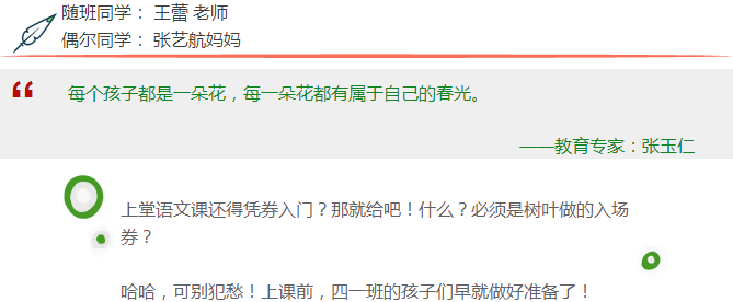 周五,四一班的孩子們每人手持兩片樹葉,興高采烈地進(jìn)入張奶奶的作文課堂。